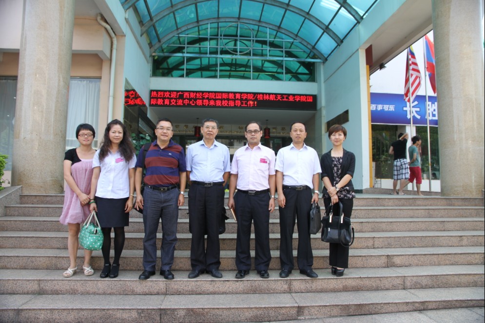 2013年10月11日,广西财经学院国际教育学院院长陈思源及桂林航天工业学院国际教育交流中心副主任唐琳率团到我校进行工作访问。国际文化教育学院党委书记罗耀光及国际交流处处长戴家毅处长接待了来宾。此次来访目的是与我校国际交流处相关负责人探讨中外合作办学、留学生管理和外教管理等方面的办学经验。