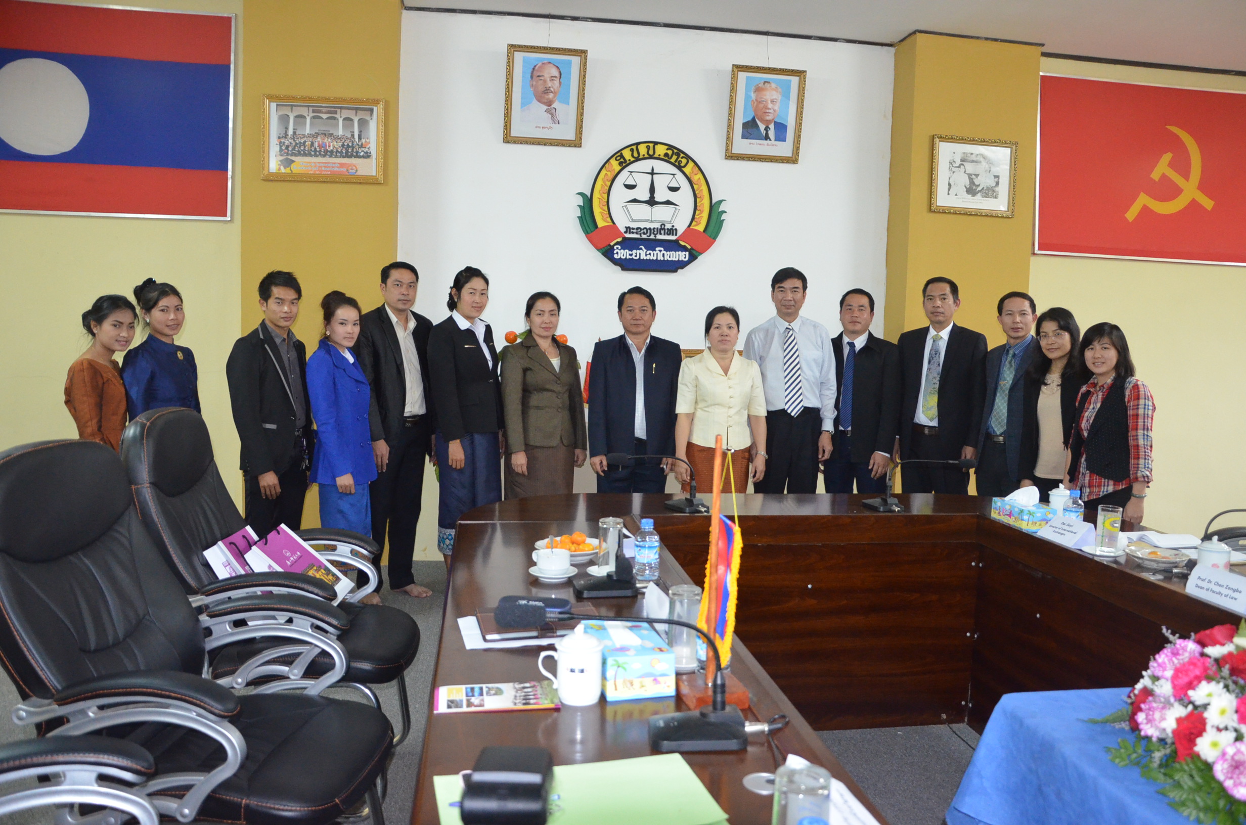 学校代表团在老挝访问期间,先后访问了老挝司法学院琅勃拉邦分校和万象总校区。梁宏校长一行与老挝司法学院院长宋迈(Sommay Syoudomphanh)博士以及琅勃拉邦分校校领导就司法学院的师资培养和短期培训以及汉语学习培训等方面进行了具体而深入的商谈,双方对彼此合作的空间和前景都十分看好。老挝司法学院主要培养老挝的司法人才,除了万象总校区外,在北部和南部各设一个分校。琅勃拉邦是老挝司法学院北部分校,主要招收老挝北部7个省的学生,同时承担老挝国防部、公安部等部门司法干部的在职培训任务。老挝司法部计划把属下的培训局和司法学院万象总校区以及北部、南部分校一起合并,组建新的老挝法律国立大学,以建立完善的司法人才培养体系。