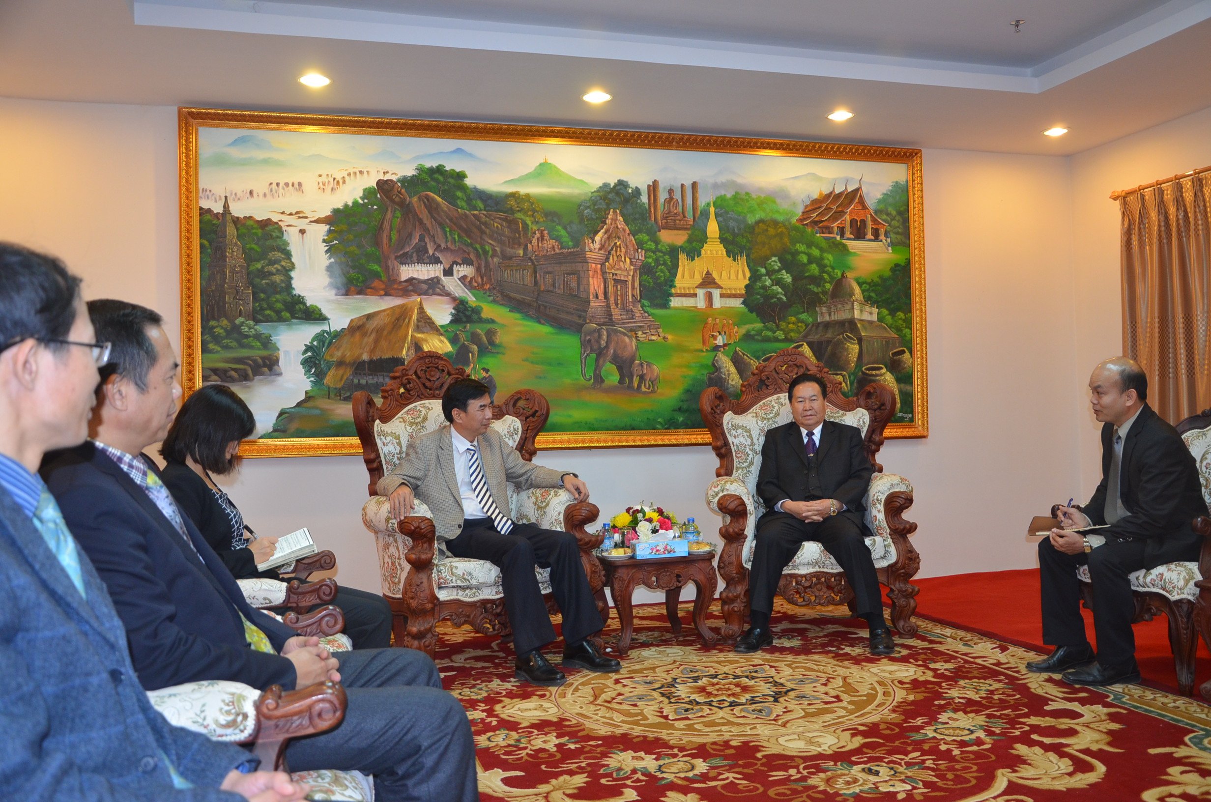 代表团成员拜访了老挝最高人民检察院和老挝国家社会科学学院。老挝最高人民检察院坎桑•苏翁(Khamsan Souvong)院长在会见时表示,老挝最高人民检察院在全国有近2000名员工,具备高学历和会讲中文的为数不多,希望在人员学历提高和汉语培训等方面能与我校加强合作。老挝人民革命党中央委员、老挝国家社会科学学院院长扎伦•叶宝河博士于百忙之中会见梁宏校长一行,向代表团介绍了老挝国家社会科学学院的基本情况。同时,回忆起2013年到广西访问的情景,当时双方商谈的是法律方面的合作,他表示,期望这次能在人文科学和汉语人才培养方面加强交流和合作。扎伦•叶宝河院长任老挝司法部部长期间,曾于2013年9月率团来广西参加第二届“中国-东盟职业教育联展暨论坛”,并到我校访问,为我校师生作《老挝法律教育概况》讲座,还受聘为我校法学院客座教授。