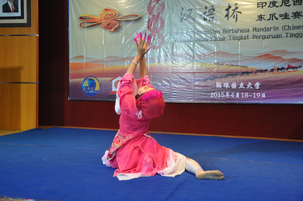 2015年4月18日、19日,由东爪哇华文教育统筹机构主办、玛琅国立大学孔子学院承办的第十四届汉语桥•世界大学生中文比赛•东爪哇赛区选拔赛在玛琅国立大学举行。本次汉语桥主题为“我的中国梦”,共分为知识竞赛、演讲比赛和才艺比赛三部分;并决出知识竞赛奖、最具口才奖、最佳风采奖、优秀奖、三等奖、二等奖、一等奖共七项大奖。其中,玛琅国立大学的八位参赛选手有五位以满分的成绩夺得知识竞赛奖,其他三位也获得了99分的高分。除优秀奖外,其他六项大奖均被玛琅国立大学中文系学生包揽。