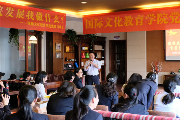 10月12日,国际文化教育学院党委在外语楼红豆会议厅召开迎校庆暨党员活动日活动,主题为“立足岗位,处/院发展,我做什么”。全体党员、积极分子、中层以上干部、全体教师、国教中心员工代表共计55人参加了活动。