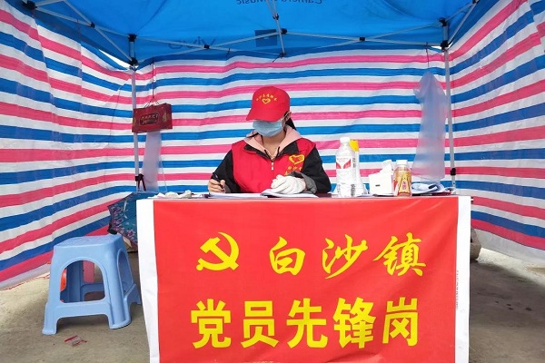 在陈越同学的家乡,出于对人民群众的安全考虑,为了避免大量的人群聚集,当地政府从2月5日开始管控出行人数,规定每家每户每两天可派一人采购必需的生活物资,并且印发了临时通行证。当地政府在村屯入街的两条主干道以及入街的各个路口设立防疫检查点,陈越的工作则是在其中一个检查点分发防疫宣传资料,登记村民出入证明,控制拦车绳,测量进入街区的群众的体温情况等。在检查点的除了陈越同学以外,还有许多当地政府的工作人员,有卫生院的医生,还有杰出的党员先锋们。他们所做的工作,比志愿者要辛苦许多。早上六点准时到达检查点,三班倒直到半夜十二点才能回去休息,几乎24小时连轴转。