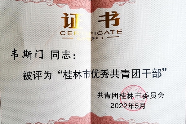 学院驻村第一书记韦斯门老师荣获桂林市“优秀共青团干部