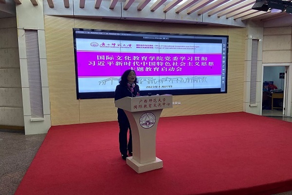 4月27日下午,国际文化教育学院党委在国际教育交流中心1号楼215召开专题会议,对学院深入开展学习贯彻习近平新时代中国特色社会主义思想主题教育进行动员部署。学校主题教育领导小组检视整治督导组成员杨荣辉莅临指导,学院领导班子、党委委员、纪委委员、分工会主席、全体党支部书记、系部主任、分团委书记、组织员、教职工党员代表、学生党员代表参加本次活动。本次会议由学院党委副书记主持。