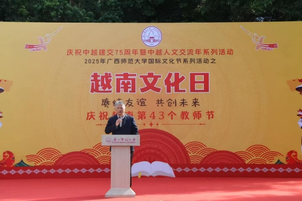 2025年11月22日,广西师范大学第十三届国际文化节之越南文化日活动在育才校区成功举办。时值中越建交75周年暨“中越人文交流年”,本次活动以“赓续友谊,共创未来”为主题,旨在深化两国情谊,丰富校园国际文化交流。