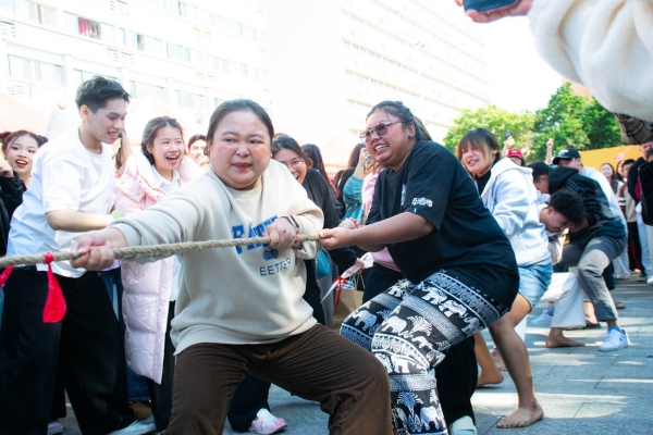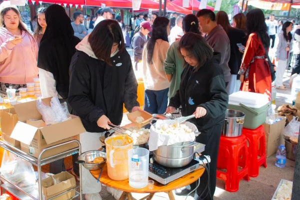随后的自由体验环节将校园变为欢乐的国际文化嘉年华。越南、泰国、印尼、老挝等国留学生准备了香气四溢的特色美食,吸引师生驻足品尝;四家知名企业为中外学子提供实习与就业咨询,切实呼应“共创未来”的主题;拔河、三人四足、跳麻袋等游戏环节欢声不断,各国学生在合作竞争中增进了解、深化友谊。