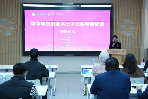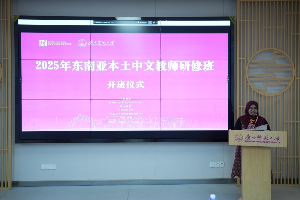 李冬梅在致辞中代表学校向各位本土教师致以最热烈的欢迎,她介绍了广西师范大学的基本情况,以及在国际中文教育推广中的贡献。她表示,中国与东盟的友好关系源远流长,此次研修班正是中国与东盟各国教育合作纵深发展的生动体现。希望通过这个研修班,进一步深化中国与东盟各国在中文、教育、文化等领域的合作交流,让更多东盟的本土中文教师提升教学水平、为东盟各国中文教育注入新动能。