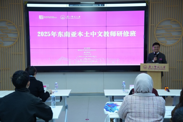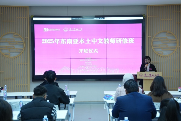 2025年12月8日下午,由教育部中外语言交流合作中心主办、广西师范大学承办的2025年东南亚本土中文教师研修班开班仪式在广西师范大学举行。来自越南、泰国、印度尼西亚、马来西亚的23名本土中文教师齐聚桂林,开启2025年本土中文教师研修之旅。国际合作与交流处处长/国际文化教育学院院长李冬梅出席仪式并致辞,国际合作与交流处副处长孟凡璧、汉语教师师文等参加活动,仪式由孟凡璧主持。