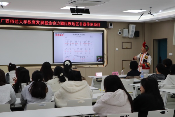 12月19日,由广西师范大学教育发展基金会边疆民族地区非遗传承教育项目组主办的“歌海寻踪·传唱经典——‘刘三姐歌谣’传习会”(第三期)在育才校区如期举行。整场活动在经典复唱与新曲学唱中续写中外文化交流的深厚情缘。