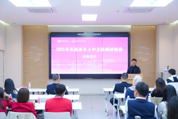 12月21日,由教育部中外语言交流合作中心主办、广西师范大学承办的2025年东南亚本土中文教师研修班在广西师范大学圆满结业。国际文化教育学院党委书记、港澳台事务办公室主任杨峰出席仪式并致辞,国际文化教育学院党委副书记孙中会一同出席,国际合作与交流处副处长孟凡璧主持仪式。