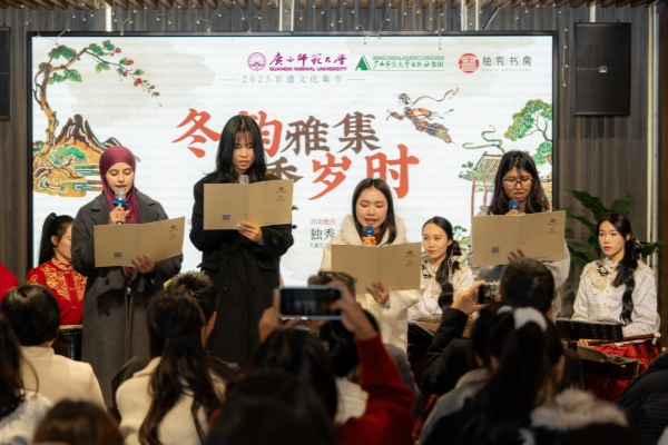 12月26日下午,“冬韵雅集·书香岁时”文化市集在独秀书房·旗舰店举办。本次活动由广西师范大学出版社集团指导,广西师范大学出版社集团国际事业部、独秀书房公司承办,广西师范大学国际文化教育学院协办,旨在以传统文化为载体,搭建中外青年交流平台,推动文明互鉴与城市文化氛围共建。广西师范大学国际文化教育学院党委副书记、纪委书记孙中会,广西师范大学出版社集团国际事业部主任陶佳,广西师大出版集团国际事业部副主任唐俊轩,独秀书房公司总经理容罡,独秀书房公司副总经理赵峥,高级茶艺技师、广西茶艺专家委员会委员左慧梅,桂林插花非物质文化遗产代表性传承人、桂林市插花花艺协会会长郑海云出席了本次活动。