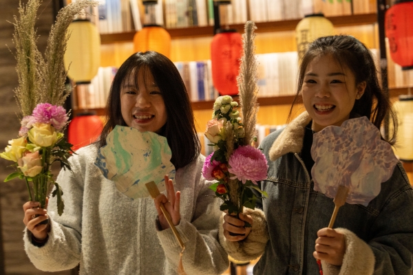本次文化市集以“冬韵雅集·书香岁时”为主题,将独秀书房化身为新宋式生活美学体验馆。现场以素雅屏风、暖黄纸灯与疏影梅枝共同勾勒出一方古典意境。市集围绕古人“四般闲事”——焚香、点茶、挂画、插花布置摊位,将书卷中的雅致生活转化为可听、可触、可感的沉浸式体验。活动特别邀请了40余位广西师范大学留学生参与,他们在体验中国传统雅文化的同时,也通过文化分享、手作共创等形式,与桂林市民展开友好交流。
