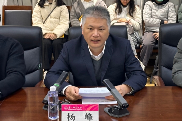 广西师范大学港澳台事务办公室主任杨峰欢迎交流团到访,并回顾了学校与香港教育界的长期合作,包括田家炳教育书院的捐建,与香港教育大学、香港理工大学等高校的密切往来,以及近期双方在人工智能、科技创新等领域的研学成果。他强调,学校将继续坚持开放办学,拓展交流平台,鼓励青年把握机遇,通过文化互鉴和学术共创,为桂港融合与国家发展贡献力量。