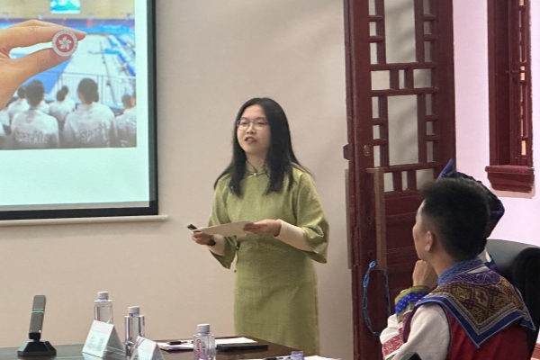 在交流环节中,两地青年围绕学习体验、文化感知与成长心得踊跃分享。广西师范大学教育学部研究生秦佳欢生动展现了校园生活的丰富多彩;文学院/新闻与传播学院本科生蔡开彬结合全国学联参会与“田家炳杯”竞赛经历,抒发了“以教育照亮民族未来”的共鸣;马克思主义学院本科生赵裕娉以“同根、同心、同行”为主线,分享了学青会担任香港代表队引导员时的动人故事;设计学院本科生庞胤则介绍了广西丰富的非遗文化,邀请大家感受“各美其美,美美与共”的独特魅力。