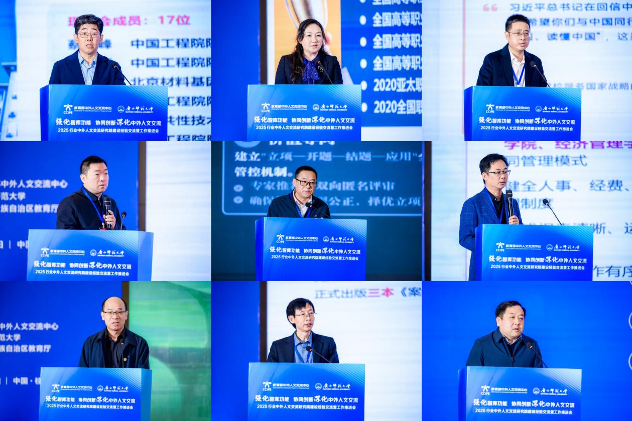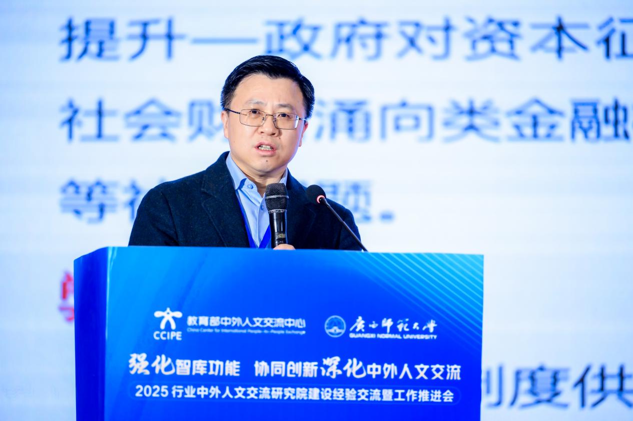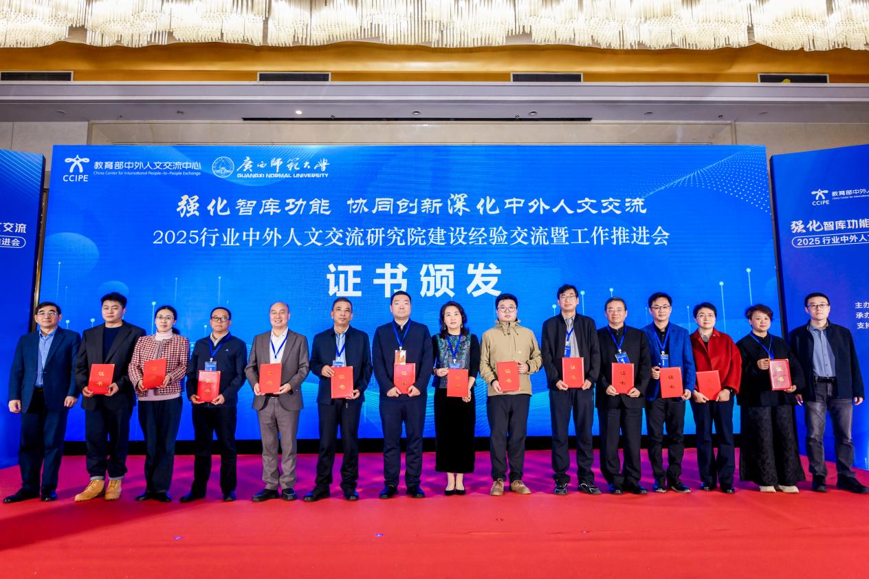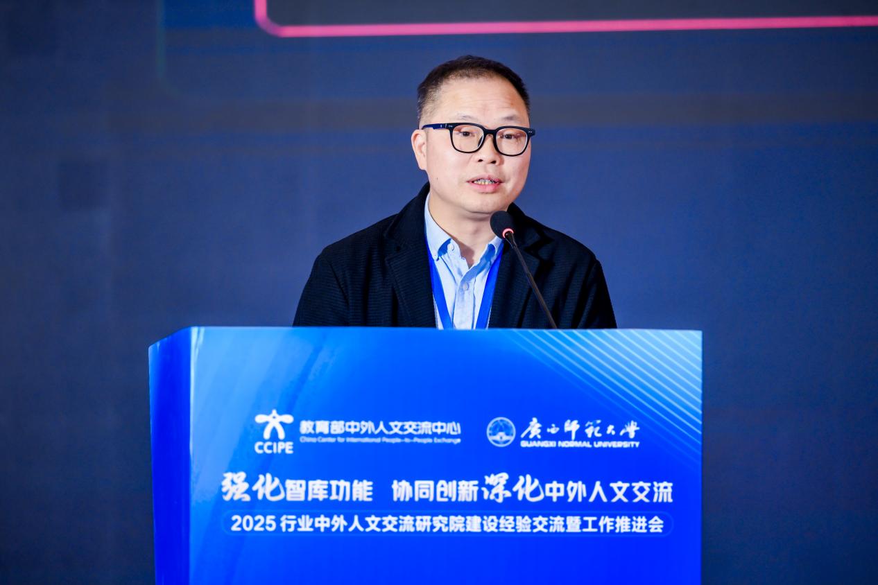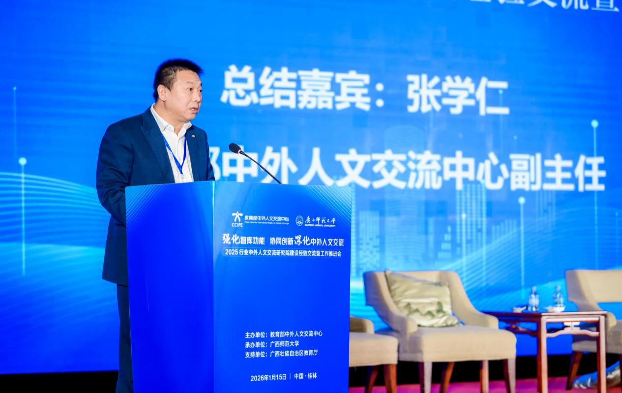 为深入贯彻关于深化中外人文交流、扩大教育对外开放的决策部署,1月15日,由教育部中外人文交流中心主办的2025行业中外人文交流研究院建设经验交流暨工作推进会在桂林市顺利召开。本次会议以“强化智库功能,协同创新深化中外人文交流”为主题,由教育部中外人文交流中心主办,广西壮族自治区教育厅支持,广西师范大学承办。教育部中外人文交流中心主任于长学,广西壮族自治区教育厅副厅长张元良,广西师范大学校长孙杰远,来自全国多所高校、科研院所、教育行政部门及中外人文交流特色学校的120余代表参会。