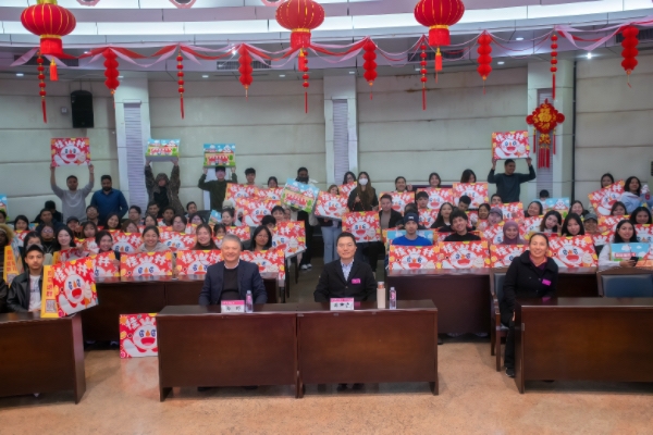 接着,国际处/国教院党委主要负责人代表学校给全体留校国际学生发放了春节礼包,送上春节祝福,表达了学校对国际学生的关怀和慰问。
