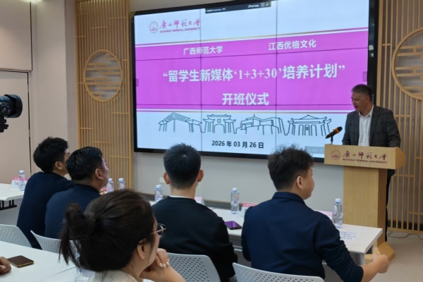 2026年3月26日至29日,广西师范大学联合江西优格文化启动首期留学生新媒体“1+3+30”定向培养计划,江西优格文化讲师团队和我校越南企业家校友代表,通过理论讲授和跨境电商实操,带领20余名留学生真切体验了网络跨境电商的全流程和理论支撑,在校企协同育人、校友资源开发、国际学生培养模式创新等方面进行了积极探索。